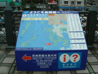 | 長崎駅は思ったより小さな終着駅でした。 | 同じく駅前の長崎県の地図 |