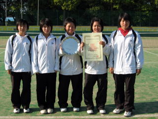 | 準決勝で1ポイント落としたものの順当に決勝へ駒を進めた第1シードの東京学館浦安高校と,準決勝で第2シードの昭和秀英高校に接戦で競り勝った第3シードの八千代松陰高校との決勝戦となった。2面同時展開で行われ,第1シングルスの東京学館浦安高校・土居選手は,強烈なファーストサーブは確率が低かったが,深く切れ味の鋭いストロークで八千代松陰高校の建部選手に付け入る隙を与えず,6−0のスコアで圧勝した。ダブルスの東京学館浦安高・八角・増尾組は,コンビネーションの良さとボレーの切れ味で八千代松陰高校の木原・石川組に対してゲームを優位に進め,結局6-3のスコアで勝利して,4年連続5度目の優勝を果たした。 | 順当に駒を進めた大会第1シードの東京学館浦安高校と第2シード東京学館高校の対戦となった。女子団体戦の決勝はダブルスと第1シングルスの2面展開で始まった。ダブルスは東京学館浦安高校が石川・猪俣組,東京学館高校が岩田・鈴木組という共に1,3年のペアで臨んだ。一方第1シングルスは奥間選手と池田選手のエース対決となった。接戦の予想に反し,奥間選手がスピードとパワーで池田選手を圧倒し6−0で勝利した。ダブルスは効果的なストレートと,相手のミスでポイントを重ねた岩田・鈴木組が3−1と序盤はリードする。しかし,徐々にコンビネーションが良くなり,相手のボールのコース予想もさえてきた石川・猪俣組が第9ゲームで逆転に成功すると第10ゲームをラブゲームで取り,一気に勝利をものにした。その結果,第2シングルス後藤選手対美濃越選手の結果を待たず2年連続3度目の優勝とともに,東京学館浦安高校が昨年に続いてのアベック優勝を果たした。 |