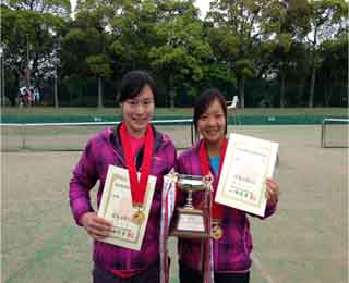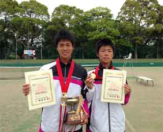 | 決勝は順当に勝ち上がった第1シード小林・高村ペア(学館浦安)と第7シードで1年生ペアながら決勝に駒を進めた宮本・渡邉ペア(秀明八千代)の対戦となった。第2シードを破って勢いにのる宮本・渡邉ペア(秀明八千代)は序盤こそ2-1とリードするものの、小林・高村ペア(学館浦安)は持ち味のストローク力を生かし相手にミスをさせる展開で、ポイントを重ねる形でペースを掴んだ小林・高村ペア(学館浦安)は昨年の優勝者としての実力を発揮し6-3で勝利した。今大会の優勝で小林・高村ペア(学館浦安)は昨年に続き大会2連覇となった。 |