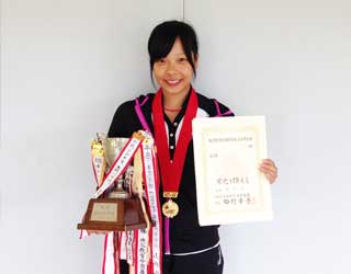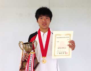 | 雨の中行われた男子シングルス決勝は、第1シード小林紀輝選手(秀明八千代)と第3シード小林雅哉選手(学館浦安)の戦いとなった。序盤は長いストローク戦となり、小林雅哉選手の力強いフォアハンド、小林紀輝選手のねばり強いプレーとカウンターショットなど、互いの持ち味を発揮し、相方ゆずらないゲーム展開となった。2度の雨での中断の後、小林紀輝選手は緩急をつけたプレーで相手のミスを誘い、4-2とリード。その後も、ラリーの主導権を握り、一気に5-2とリードした。第8ゲーム、得意のカウンターとバックハンドのショートクロスを決め、更に勢いに乗った小林紀輝選手。小林雅哉選手に反撃のスキを与えず、第1シードの力を見せつけ、嬉しい初優勝を飾った。 | 女子決勝は新人戦シングルスを優勝し連続優勝を狙う第1シード齊藤選手と第7シード三角選手の初対戦となった。第1シード齊藤選手は準々決勝、準決勝と苦しみながら決勝にコマを進め、一方第7シード三角選手は混戦の中、第3シード大河選手を下し勝ち上がってきた新鋭1年生千村選手を強打で下し決勝にコマを進めた。ゲームは雨による中断もあり、攻め続けた三角選手が3-1とリード、続く第5ゲームを齊藤選手が3-2とブレークバックすると次のゲームを三角選手が再びブレークし4-2と突き放す。そこから齊藤選手が三角選手の強打をしのぎ、甘いボールをポイントして3ゲーム連取し5-4と逆転、三角選手もあきらめる事なく強打を繰り出しポイントを奪い5-5、続くゲームも強気に攻め6-5と逆転、終始強気の攻めで第12ゲームも齊藤選手を圧倒7-5と第1シード齊藤選手を下し、国府台女子三角選手が総体初優勝を飾った。 |