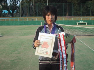 大会第1シード奥間選手と,準決勝で第2シード東京学館高校,美濃越選手を接戦の末制した第3シード猪俣選手という東京学館浦安高校勢による決勝となった。朝方まで降った雨の影響をもろともせず,奥間選手が持ち前の強打と,時折みせるドロップショットで終始ゲームを支配する。猪俣選手もエースショットを決めるものの,ポイントが続かず最後は猪俣選手のサーブがダブル・フォールトとなり,奥間選手が6−1で勝利し2年連続の優勝を飾った。 |