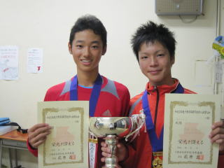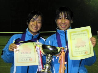 | 第1シード由井・石井組(東京学館浦安)と第2シード中野・齋藤組(昭和秀英)の決勝となり、昭和秀英、齋藤選手のサービスから始まったゲームは、由井・石井組のスマッシュミスなどもあり中野・齋藤組がキープ、その勢いのまま思い切ったプレーをし、中野・齋藤組が続く第2、第3ゲームも連取した。第4ゲーム、石井選手のサービスゲームをキープした由井・石井組が中野・齋藤組の思い切りのよいショットをカウンターで返すなど3ゲームを連取し3−3に追いつきそのまま流れに乗るかと思えた次の第7ゲーム、中野選手はサービスゲームを簡単にキープし4−3でリード。第8ゲーム、石井選手のサービスゲームを中野・齋藤組は勝負所を見てリターン、ボレーなど思い切ったプレーを繰り出し5−3とリードし第9ゲーム、その勢いのまま積極的なプレーで由井・石井組につけ込む隙を与えず、6−3で勝利し初優勝を飾った。 | 日没により,場所を鷹之台テニスクラブに移して行われた決勝戦は、第3シード幕張総合の松本・盛重組と第4,5シードを破り決勝に進出した学館浦安の石井・長友組の対戦となった。学館浦安石井選手のサービスから始まった試合は互いにサービスゲームをキープし第3ゲーム、長友選手のサービスゲームを盛重選手のスマッシュ、松本選手のストレートアタックなどでポイントを重ねブレイクすると、松本・盛重組がその後も3ゲームを連取し5−1リードとなりマッチゲームを迎える。長友選手サービスの第7ゲーム、何とか流れを変えたい石井・長友組は2人ともステイバックし変化を作る。このゲームを何とかキープし2−5とし反撃の糸口を作ろうとしたが、続く盛重選手サービスの第8ゲーム、15―30からのポイントを松本選手がハイバックボレーで30−30とすると、盛重選手が次のポイントをスマッシュで決めマッチポイントを迎える。続くポイントを松本選手がフォアボレーを逆クロスのアングルに決め6−2で勝利し初優勝を飾った。 | ||