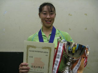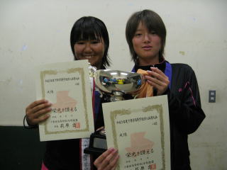 第2シード・小林選手と第5シード・岩井選手の秀明八千代同士の決勝戦となった。ゲームは序盤から小林選手が積極的に攻め、岩井選手がディフェンシブな展開。3ゲーム目までお互いにサービスキープ、第4ゲーム目に岩井選手が小林選手のサービスゲームをブレークするとゲームが動き始めた。小林選手のライン際を狙う攻撃に岩井選手がフットワークをいかしてしっかりと応酬すると、小林選手は焦りのためかストロークのミスが目立つようになる。対照的に、ミスをしないテニスを心がけた岩井選手のストロークが要所要所で良いところに決まり、その後は1ゲームも落とさず、6−2で勝負を決めた。夏以降、トレーニング量を増やしたと言う岩井選手の言葉通り、安定したプレーで初めての優勝であった。 | ||